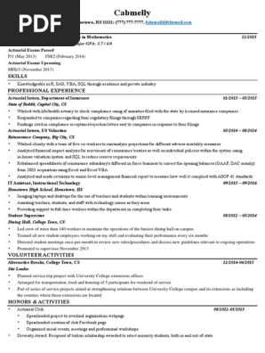 February 28, 2021If you're looking for your first actuarial internship or job, you're definitely going to want to make sure employers see that you've passed an actuarial exam or two. That'll really boost your chances of getting the position. But actuarial exams aren't something you've ever had to include on your resume before. Guide the recruiter to the conclusion that you are the best candidate for the actuarial job. It's actually very simple. Tailor your resume by picking relevant responsibilities from the examples below and then add your accomplishments. This way, you can position yourself in the best way to get hired.